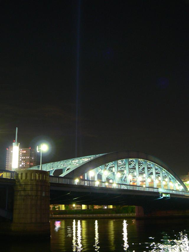 駒形橋の優雅な曲線とレーザー直線の組み合わせがキレイでした