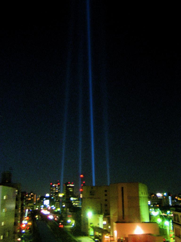 天空にのびる光タワー
