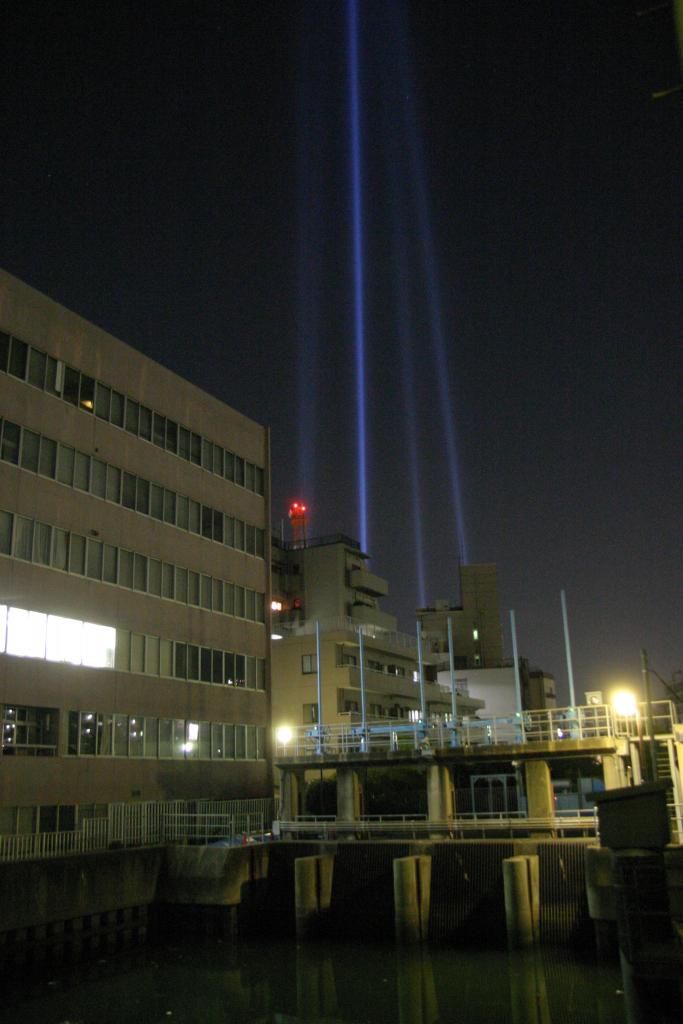 建設予定から程近い吾妻橋3丁目の十間川より光の巨人がハッキリと見えた